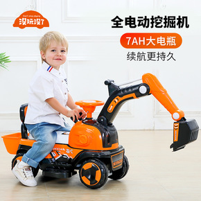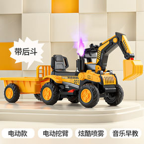 儿童电动挖掘机四轮电动老挖可坐人玩具童车音乐单驱充...