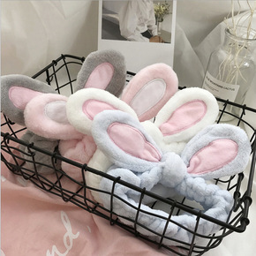 厂家批发可爱卖萌立体兔子耳朵洗脸化妆束发带发箍韩国...