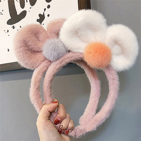 厂家直卖秋冬款可爱花朵发箍发饰可爱卖萌珊瑚绒大肠圈...