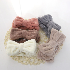 韩版珊瑚绒蝴蝶结发带洗脸化妆发带 时尚瑜伽运动可爱...