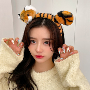 新年虎年豹纹纹老虎头箍女可爱卡通搞怪聚会洗脸敷毛绒...