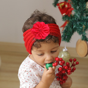 跨境欧美新款火柴花毛线发箍发饰 可爱宝宝百搭头带保...