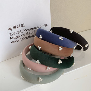 韩国ins风绒布海绵增颅顶发箍墨兰色系清新发夹气质...