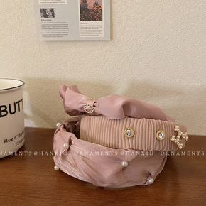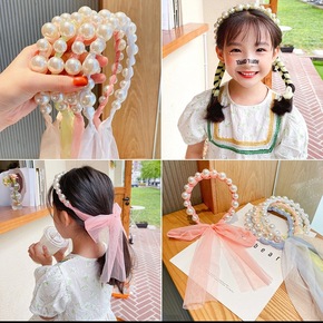 新款蝴蝶结珍珠水晶蕾丝法式编发可爱甜美头箍夏仙女飘...