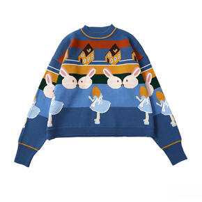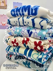 初秋新款韩版宽松套头花色女装毛衣实体店直播外贸女装...