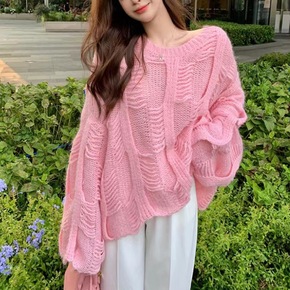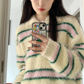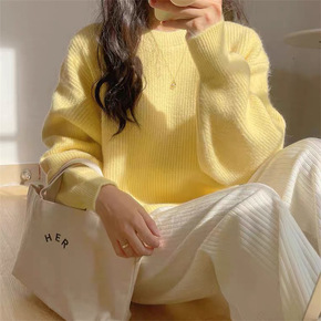 很仙仿马海毛套头毛衣女宽松慵懒风圆领软妹甜美秋冬外...