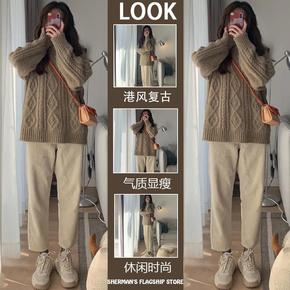 温柔可爱风复古长袖2022冬季新韩版小个子少女穿搭...