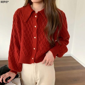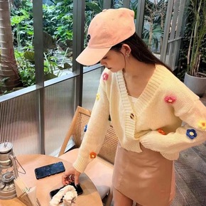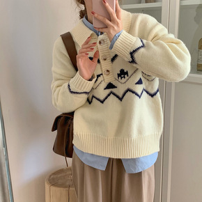 韩版慵懒学院风针织衫森系百搭外套女2022秋冬po...