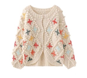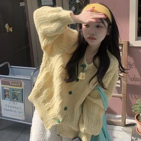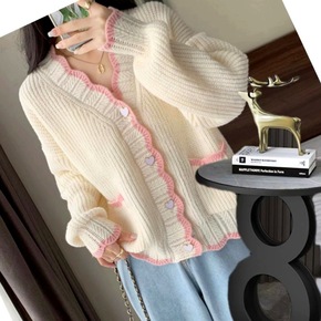 2022春秋温柔风软糯针织开衫女宽松慵懒落肩毛衣外...