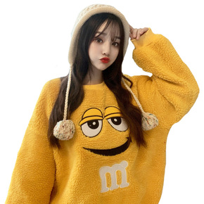 2020冬季毛茸茸卫衣女欧美女装大码加绒学生可爱上...