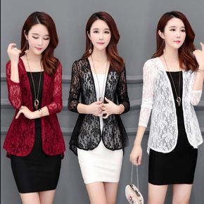 蕾丝开衫夏季配裙子镂空小披肩外搭大码短款防晒衫网纱...
