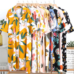 衬衫睡裙批发学生装睡衣女翻领裙开衫人造棉卡通短袖居...