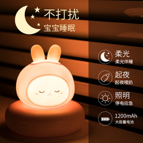 充电小夜灯婴儿喂奶护眼卧室柔光睡眠灯儿童女生可爱床...
