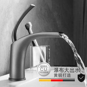 灰色瀑布水龙头全铜冷热面盆龙头浴室柜卫生间洗脸盆家...