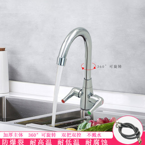 双三孔龙头冷热洗脸盆龙头立柱台盆不锈钢家用面盆旋转...