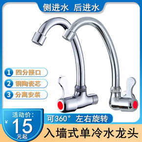 迈司入墙式厨房单冷水龙头面盆台盆陶瓷盆入墙水龙头铜...