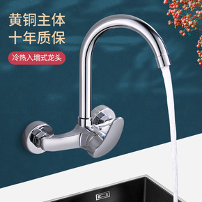 入墙式冷热水龙头厨房洗菜盆水槽洗衣池阳台洗脸盆黄铜...