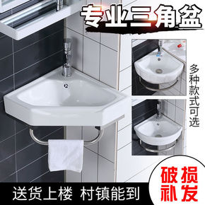 简约挂墙式洗手盆洗脸盆拐角卫生间简易陶瓷面盆小户型...