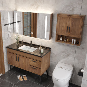 全实木浴室柜现代简约北欧落地岩板洗脸台盆洗手盆柜面...