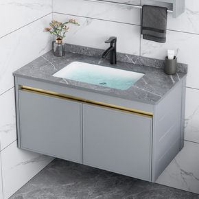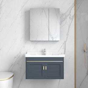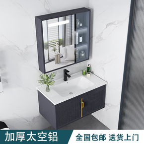 新款太空铝合金浴室柜组合卫生间洗脸盆洗手盆一体陶瓷...