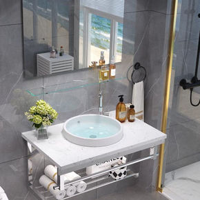 现代简约大理石挂墙式洗手盆卫生间洗漱台洗脸盆浴室镜...