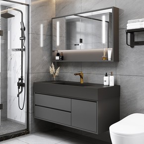 微晶石岩板一体盆浴室柜组合现代简约套装卫生间洗手洗...