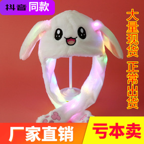 抖音同款发光兔子帽耳朵会动的兔兔帽子网红同款可爱毛...