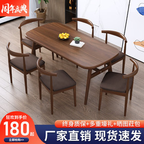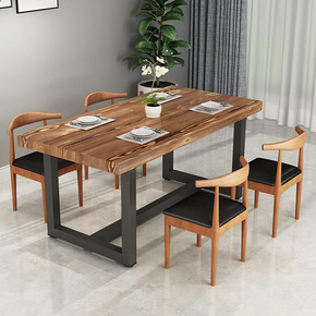 北欧烧烤店餐厅面馆复古实木餐桌椅组合简约家用吃饭桌...