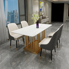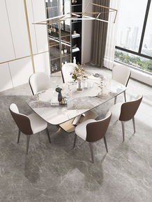北欧轻奢岩板餐桌椅组合家用长方形吃饭桌酒店西餐厅休...