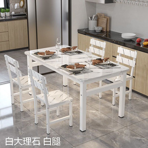 网红方桌子实木餐桌椅组合家用吃饭桌大理石小户型长方...