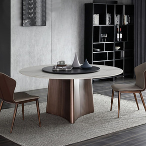 意式极简哑光岩板圆餐桌带转盘大理石圆形餐桌家用后现...
