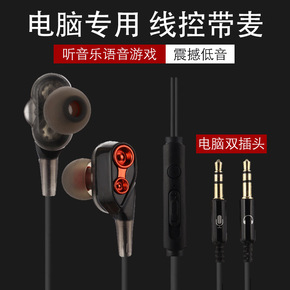台式电脑入耳式耳机带麦游戏重低音头戴式吃鸡耳麦网咖...