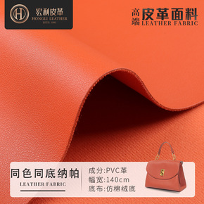 1.9mm荔枝纹双面同色同底pvc皮革面料 箱包手...