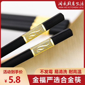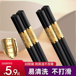 金福合金筷子10双装加粗家用防滑防霉耐高温不发霉酒...