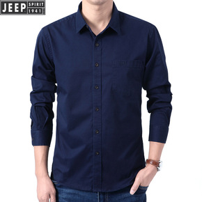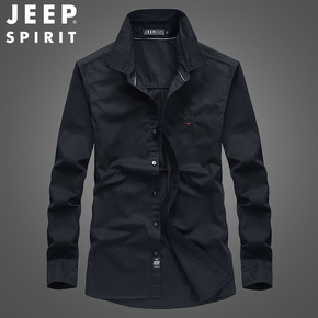 JEEP SPIRIT男条纹翻领体恤衫大码男士长袖...