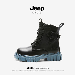 jeep马丁靴儿童春秋2021新款黑色皮靴短靴工装...