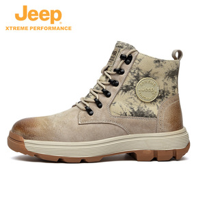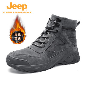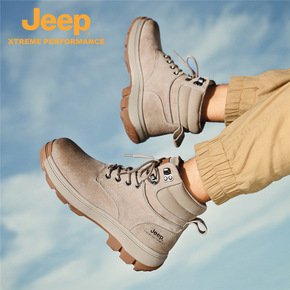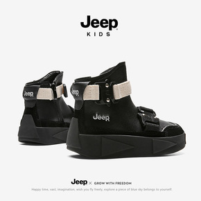 jeep男童马丁靴春秋2021新款雪地靴黑色皮靴单...