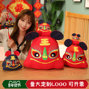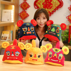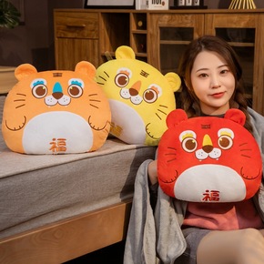 卡通生肖虎年吉祥物暖手抱枕靠垫布老虎头娃娃毛绒玩具...