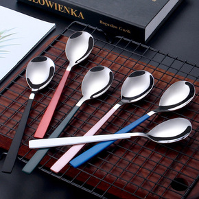 304不锈钢勺子长柄汤匙家用调羹创意彩色匙羹韩式可...