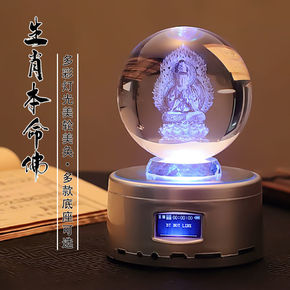 水晶球音乐盒办公室桌面摆件本命佛十二生肖创意礼品佛...