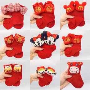 儿童红色袜子新生儿本命年袜喜庆红袜立体公仔儿童棉袜...