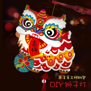 新年元宵节狮子灯笼装饰儿童卡通幼儿园制作diy发光...
