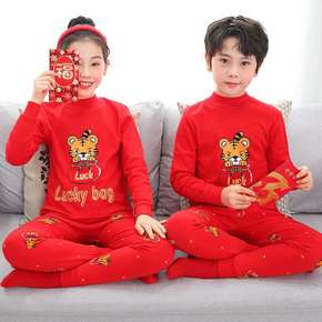 儿童秋衣秋裤男女童宝宝大红内衣套装本命年睡衣棉毛衫...