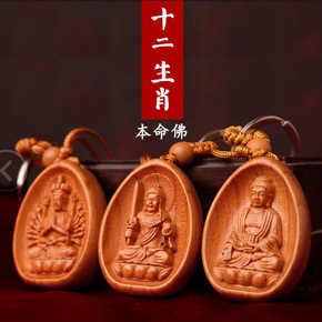 桃木十二生肖本命佛本命年挂件随身木雕钥匙扣吊坠...
