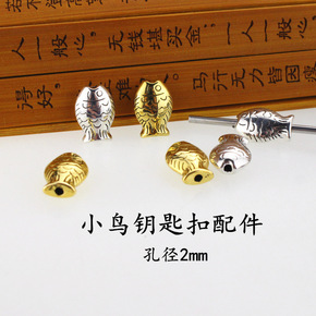 diy手工小鸟钥匙扣配件佛珠饰品配饰 小鱼金色银色...