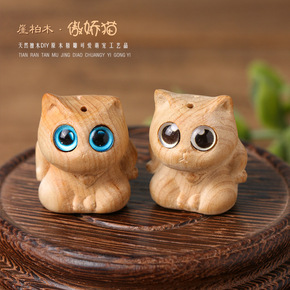 崖柏傲娇猫咪钥匙扣挂件DIY手机链包包吊坠木雕可爱...