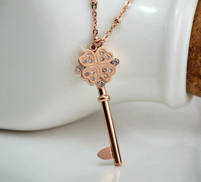 新款批发钛钢钥匙钻女生彩金毛衣链 项链玫瑰金女长款...