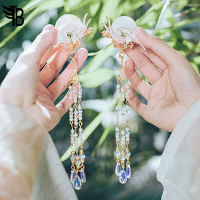 汉服头饰古装配饰女飞鸟贝壳流苏发夹饰品烧蓝发簪步摇...
