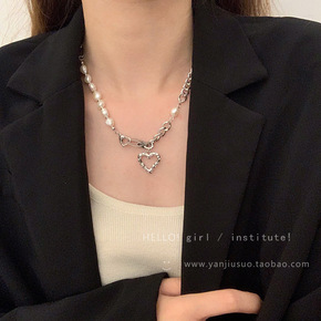 品牌:other 坠子材质:合金 风格:日韩 颜色:银色珍珠拼接爱心项链 产地:中山 形象:...