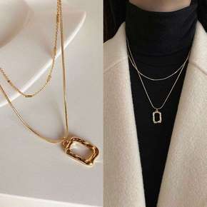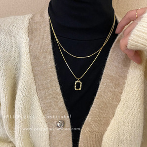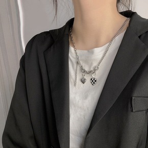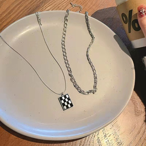 双层棋盘格钛钢项链女秋冬潮ins小众时尚高级感百搭...